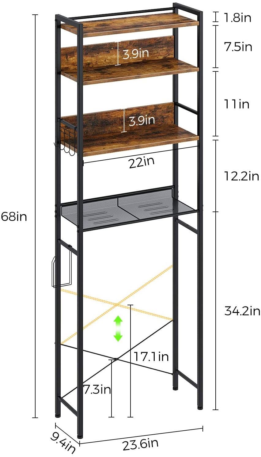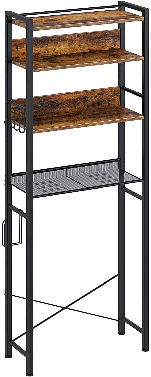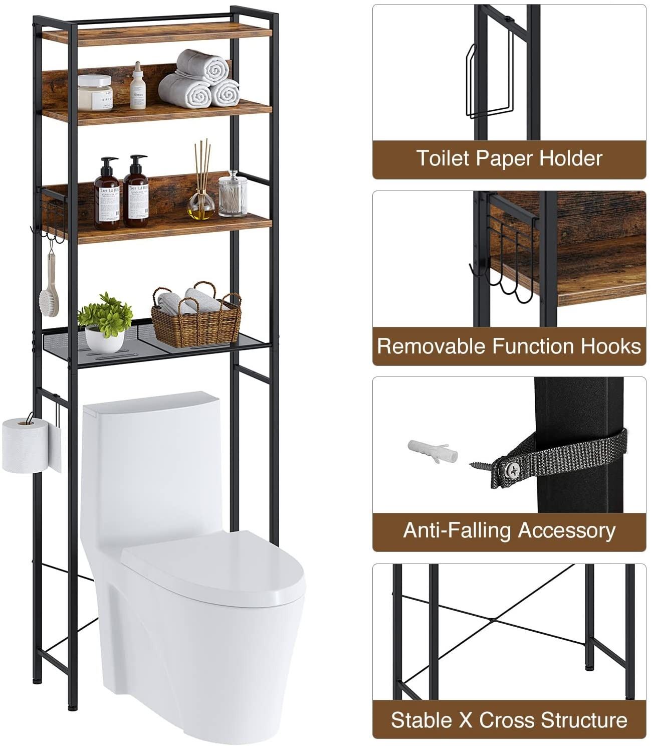 4 TIER OVER THE TOILET STORAGE SHELF, RUSTIC BROWN DESIGN, FREESTANDING, MULTI FUNCTIONAL, ALL PARTS CONFIRMED, INSTRUCTION MANUAL INCLUDED, AMZ SES