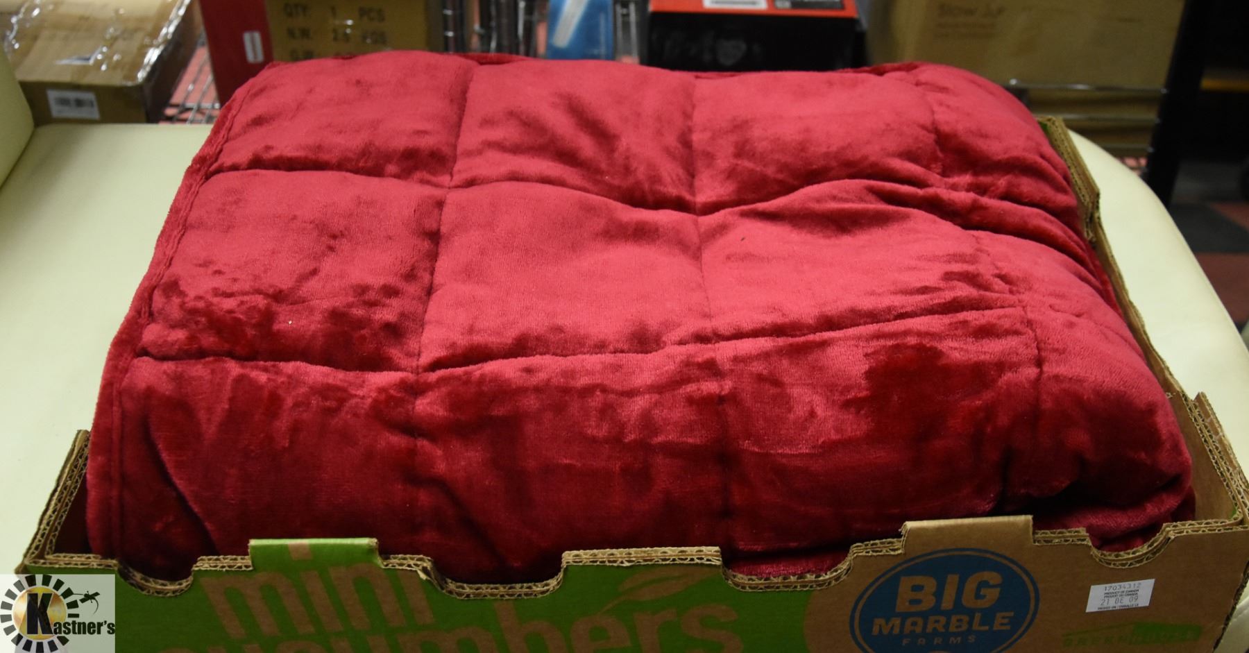 APPROX. 48" X 72", RED PLUSH MATERIAL, AMZ SES