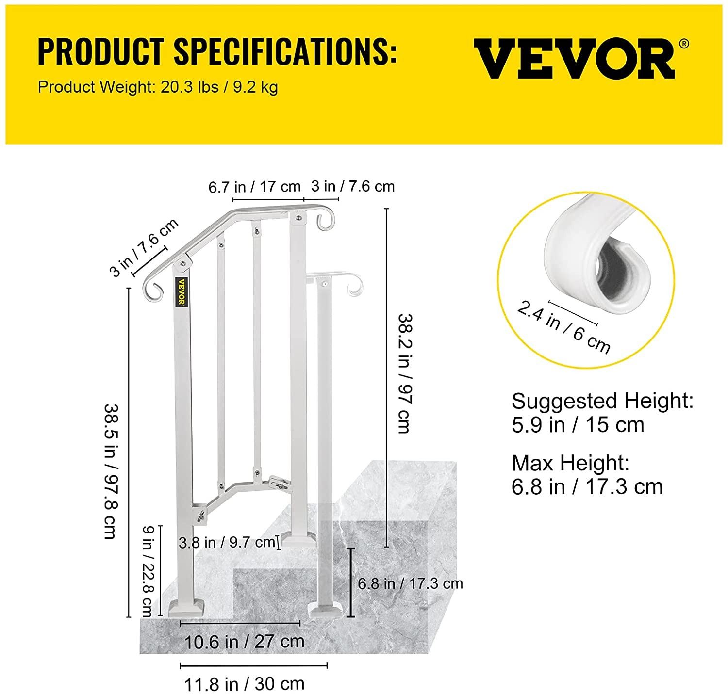 NEW REPACKED 1-2 STEPS PICKET HAND RAIL, WHITE