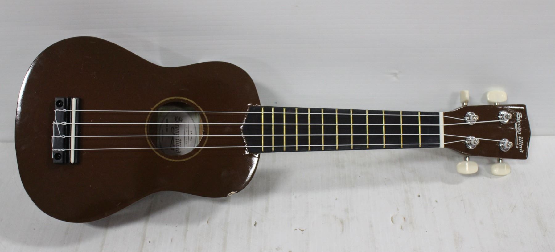 MINOR DAMAGE TO BODY OF UKELELE WITH SOME SCRATCHES, SEE ATTACHED PICTURES, AMZ SES