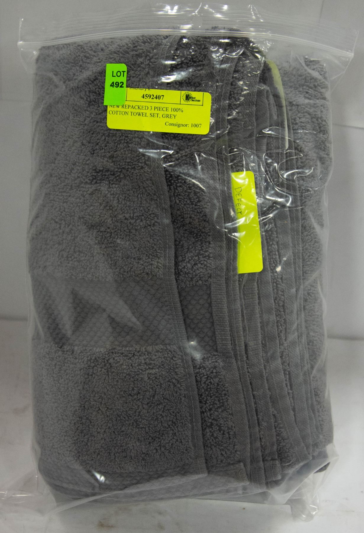 NEW REPACKED 3 PIECE 100% COTTON TOWEL SET, GREY