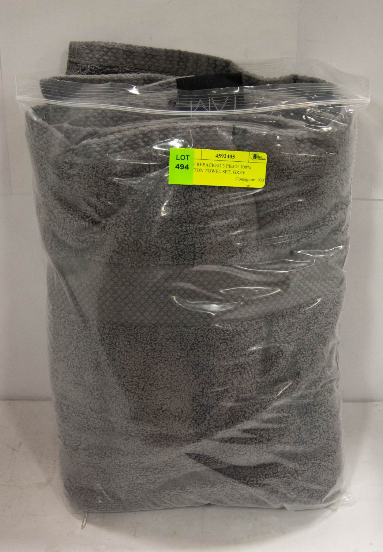 NEW REPACKED 3 PIECE 100% COTTON TOWEL SET, GREY