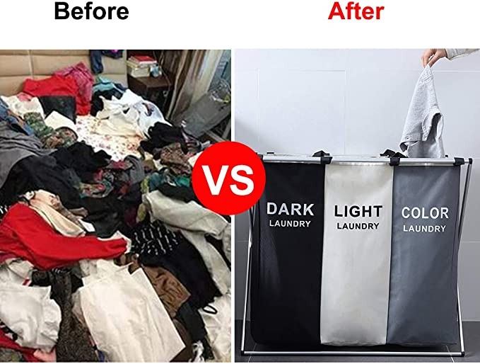 NEW REPACKED 3 SECTION LAUNDRY HAMPER