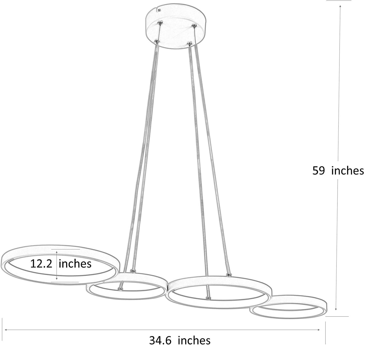 NEW REPACKED 4 RING LED DROP DOWN PENDANT LIGHT FIXTURE, WHITE, 3000K LUMEN, WARM WHITE, CLASS A ENE