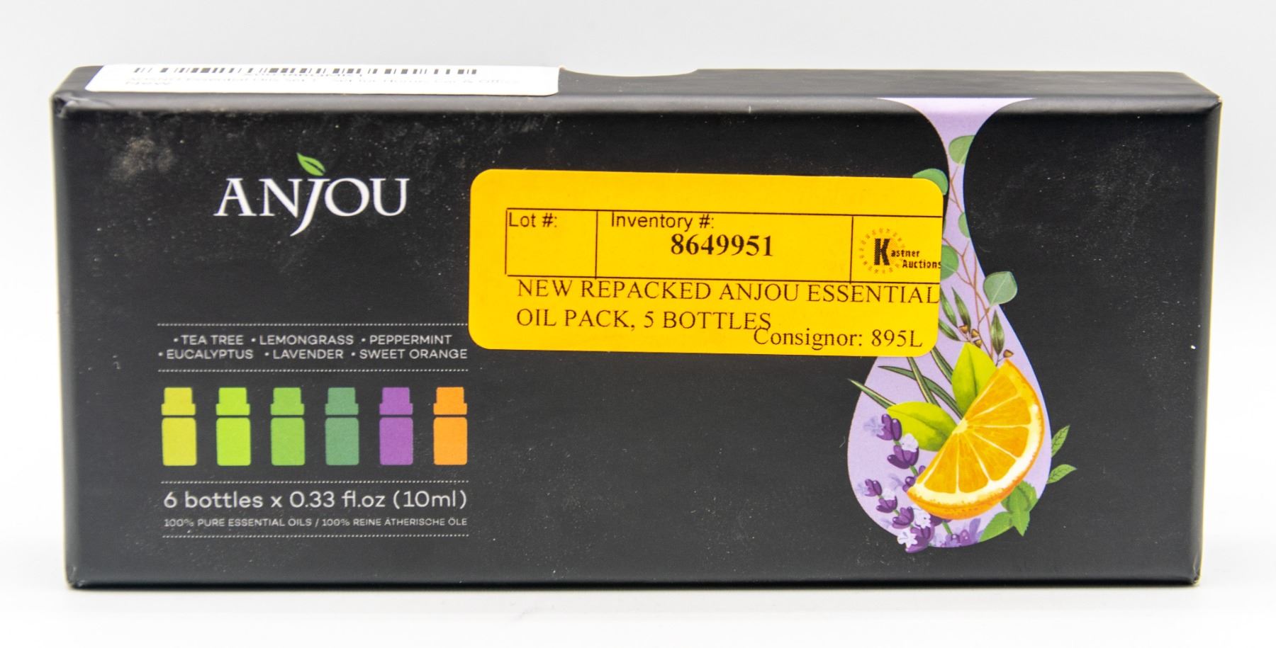 NEW REPACKED ANJOU ESSENTIAL OIL PACK, 5 BOTTLES