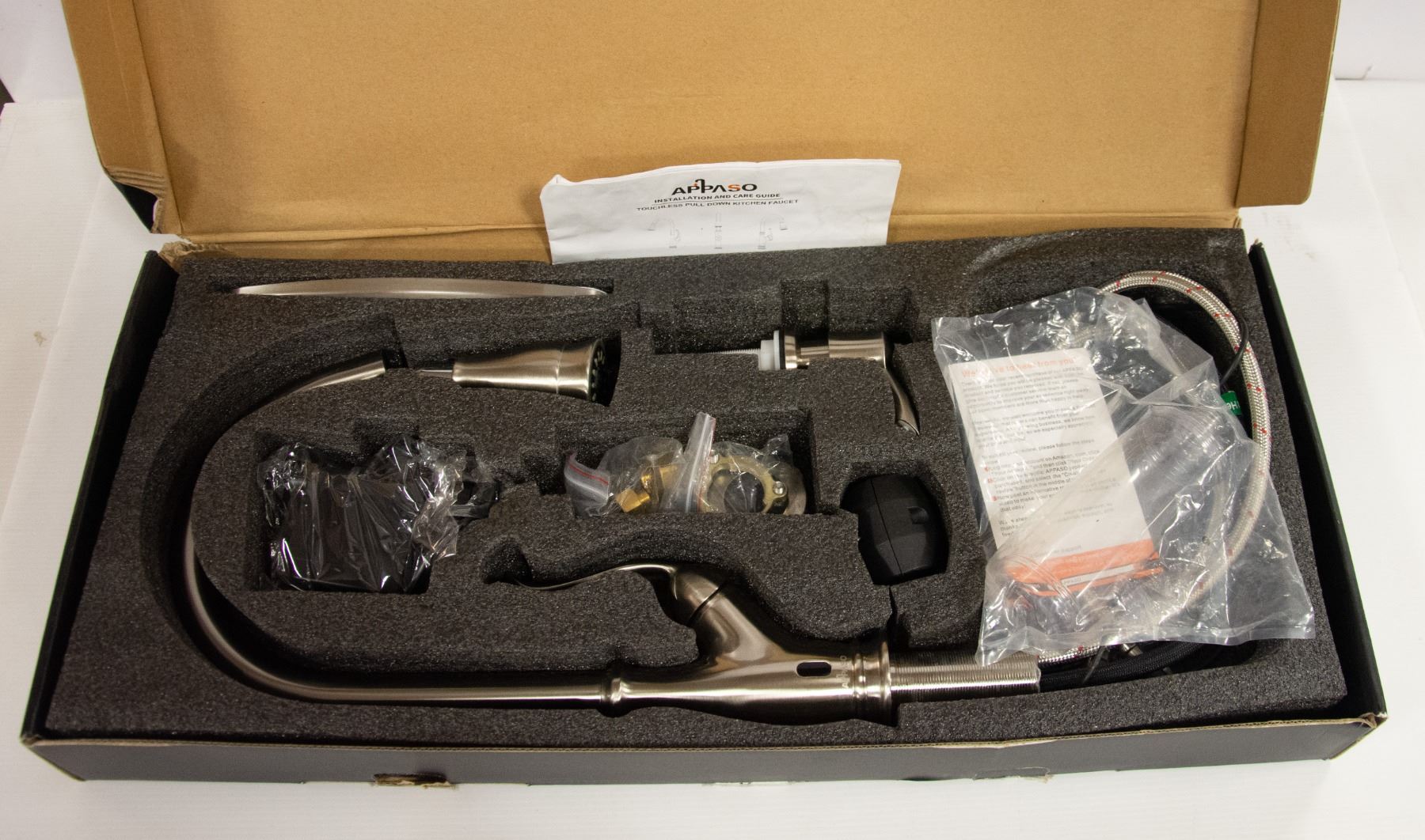 DISPENSER, TOUCHLESS MOTION SENSOR ACTIVATION, SINGLE HOLE DECK PLATE, PULL DOWN SPRAYER WITH DUAL SPRAY MODES, PARTS AND MANUAL CONFIRMED, AMZ SES**ALL ITEMS MUST BE REMOVED BY 5PM SATURDAY, OCTOBER 1ST, 2022. ALL REMAINING ITEMS WILL BE SUBJECT TO A $6.00 PER DAY STORAGE CHARGE. ANY ITEMS REMAINING AFTER MONDAY, OCTOBER 15, 2022 WILL BE CONSIDERED FORFEITED. NO REFUNDS WILL BE ISSUED FOR FORFEITED ITEMS. TO SCHEDULE A PICK UP APPOINTMENT CLICK HERE