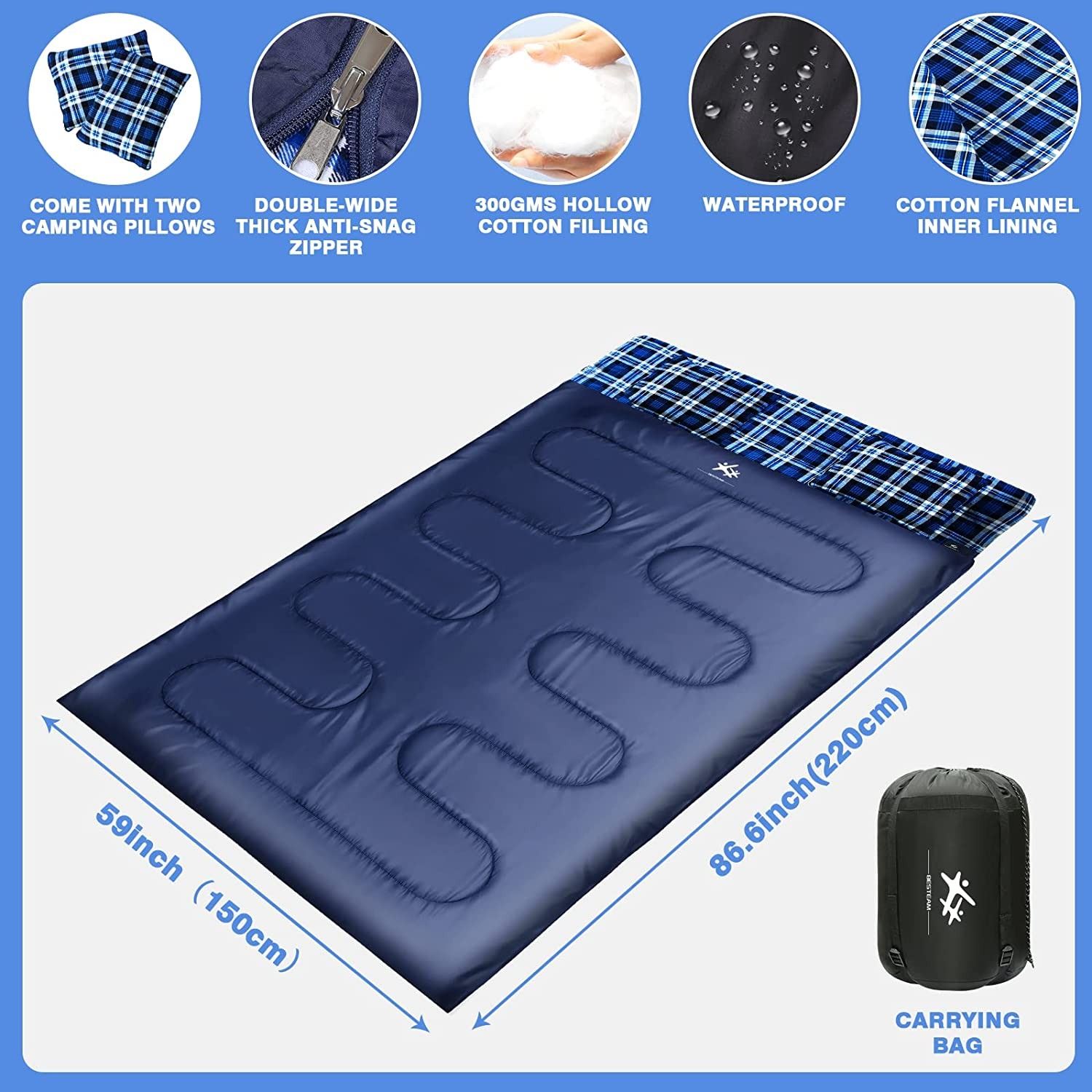 BLUE PLAID COTTON FLANNEL DESIGN, XL SIZE, DETACHABLE TO A SINGLE, COMES WITH 2 PILLOWS AND COMPRESSION SAC TRAVEL BAG, AMZ SES