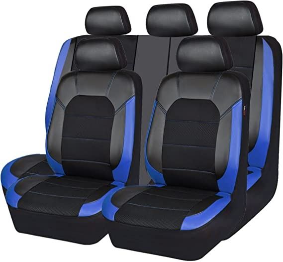 SEAT COVERS, FULL SET FRONT AND BACK, BLUE AND BLACK COLOUR, STRETCH FIT, AMZ SES