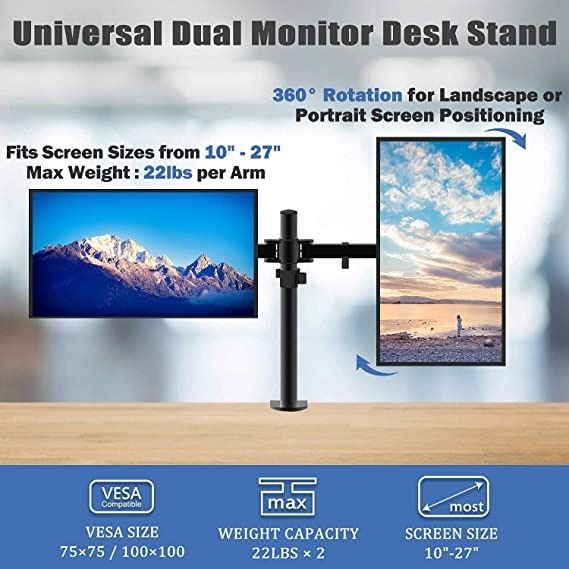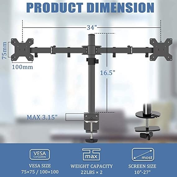 DESKTOP MOUNT, BLACK, HEAVY DUTY, SUPPORTS 22LBS PER ARM, CLAMPING ADJUSTABLE MOUNT, PARTS AND MANUAL CONFIRMED, AMZ SES**ALL ITEMS MUST BE REMOVED BY 5PM FRIDAY, SEPTEMBER 16ND, 2022. ALL REMAINING ITEMS WILL BE SUBJECT TO A $6.00 PER DAY STORAGE CHARGE. ANY ITEMS REMAINING AFTER FRIDAY, SEPTEMBER 16, 2022 WILL BE CONSIDERED FORFEITED. NO REFUNDS WILL BE ISSUED FOR FORFEITED ITEMS.** TO SCHEDULE A PICK UP APPOINTMENT. CLICK HERE
