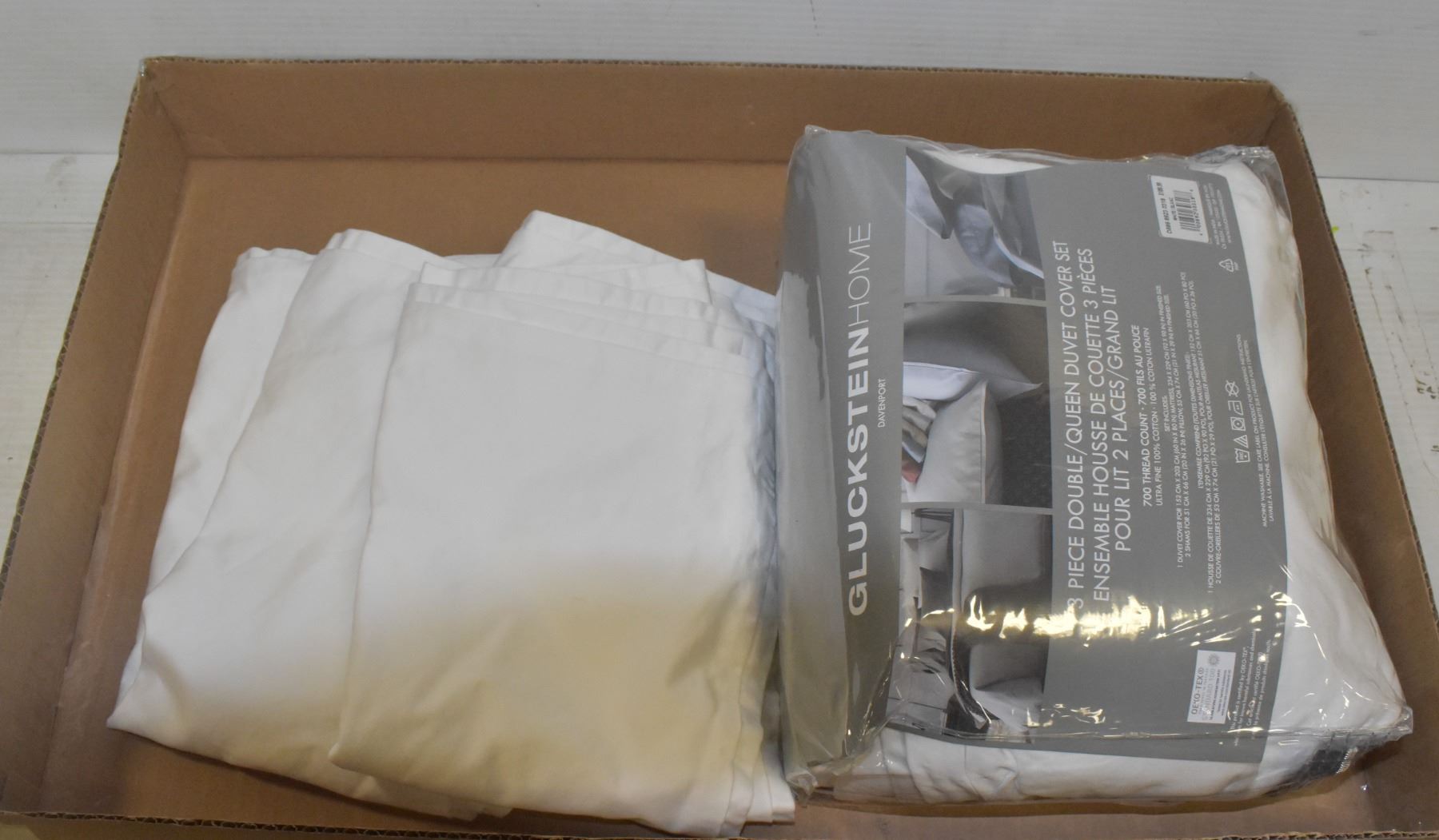 DUVET COVER SET, 100% COTTON 700 THREAD COUNT, WHITE, SHAMS 21 X 29", DUVET COVER 92 X 90", HBC SES, MSRP. $190 **ALL ITEMS MUST BE REMOVED BY 5PM MONDAY, SEPTEMBER 24, 2022. ALL REMAINING ITEMS WILL BE SUBJECT TO A $6.00 PER DAY STORAGE CHARGE. ANY ITEMS REMAINING AFTER MONDAY, OCTOBER 15, 2022 WILL BE CONSIDERED FORFEITED. NO REFUNDS WILL BE ISSUED FOR FORFEITED ITEMS. TO SCHEDULE A PICK UP APPOINTMENT CLICK HERE