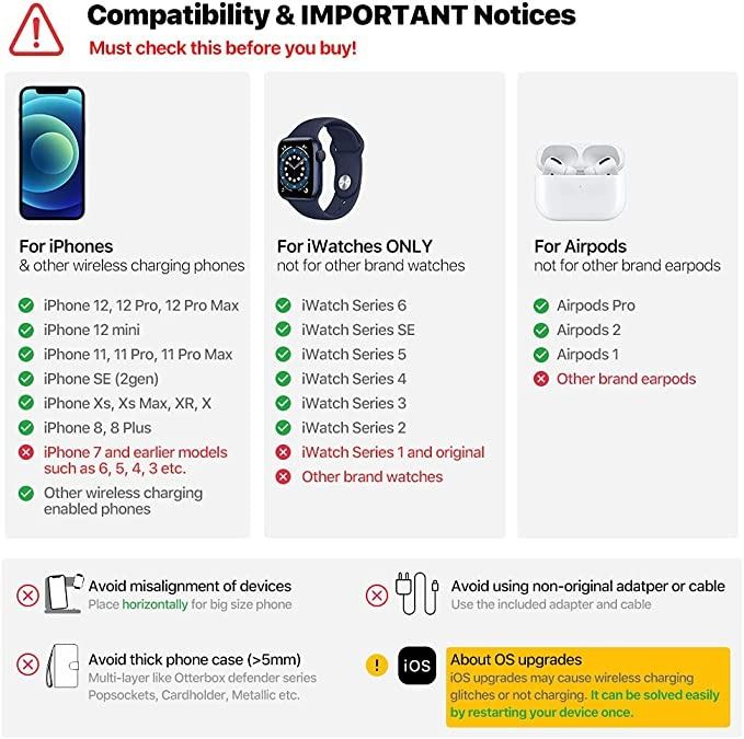 STATION FOR PHONE/AIRPODS/IWATCH, SEE PICTURE FOR COMATABILITY, TESTED, AMZ SES**ALL ITEMS MUST BE REMOVED BY 5PM FRIDAY, AUGUST 5TH, 2022. ALL REMAINING ITEMS WILL BE SUBJECT TO A $6.00 PER DAY STORAGE CHARGE. ANY ITEMS REMAINING AFTER FRIDAY, AUGUST 19, 2022 WILL BE CONSIDERED FORFEITED. NO REFUNDS WILL BE ISSUED FOR FORFEITED ITEMS.** TO SCHEDULE A PICK UP APPOINTMENT CLICK HERE