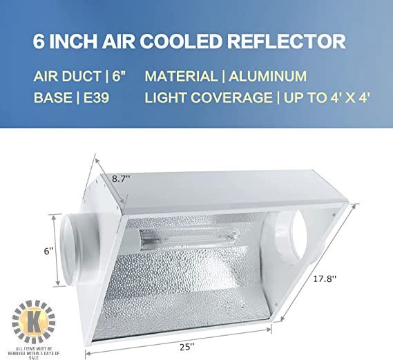 REFLECTOR - 6", 250-1000W HPS MH GROW LIGHT USE, ALUMINUM HOOD, HYDROPONIC S PLUG COMPATIBLE WITH IPOWER BALLASTS OR REQUIRES ADAPTER, NO BULBS INCLUDED, PARTS CONFIRMED, AMZ SES ALL ITEMS MUST BE REMOVED WITHIN 5 DAYS OF SALE