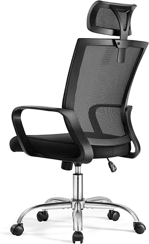 BLACK, 5 CASTOR WHEELS, ADJUSTABLE HEAD REST, TILT TENSION KNOB, HEIGHT ADJUSTABLE, LUMBAR SUPPORT, PARTS AND MANUAL CONFIRMED, AMZ SES