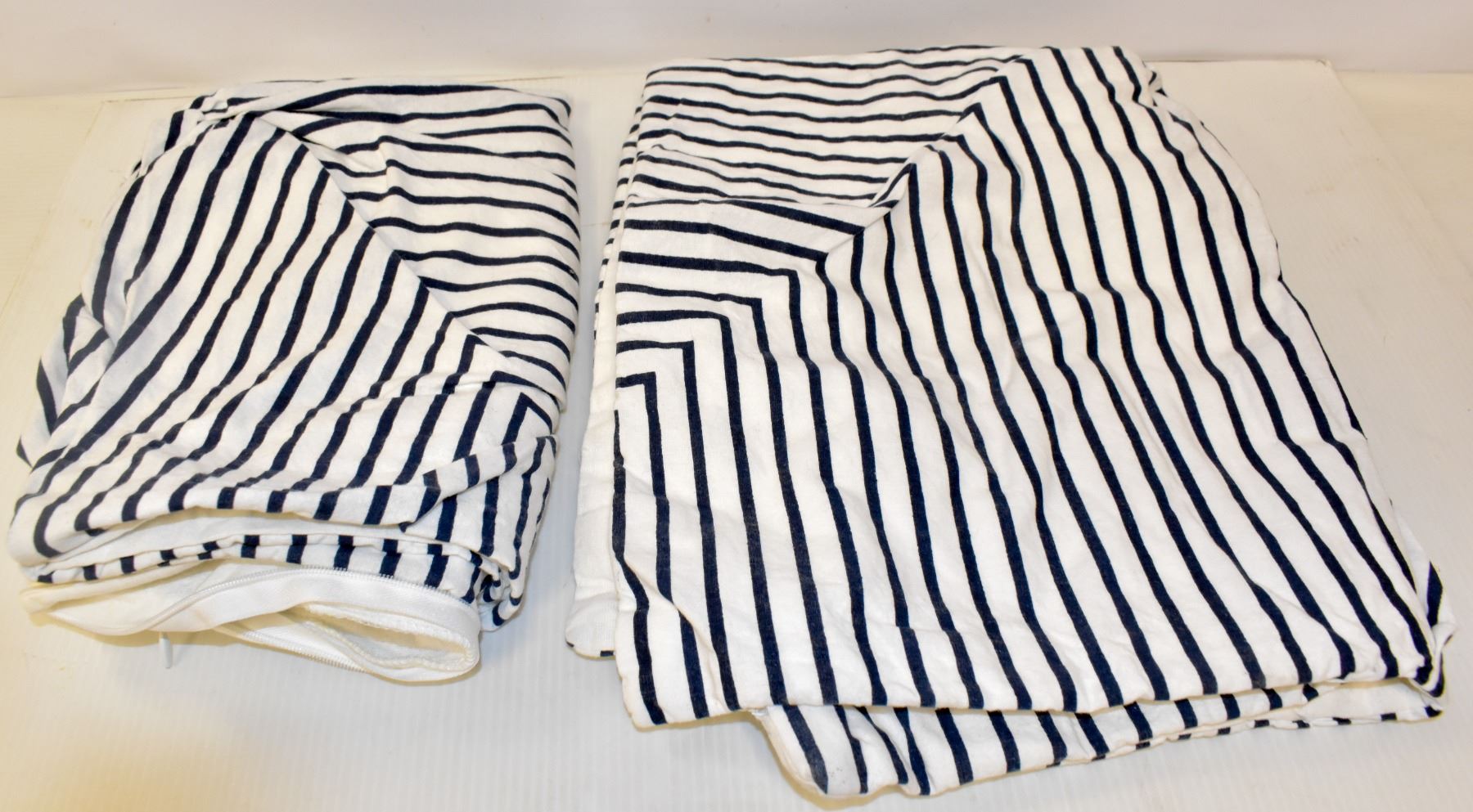 COLLECTION EXCLUSIVELY PAIR OF STANDARD SIZE PILLOWS, 24 X 19", WHITE AND BLUE STRIPED, HBC SES