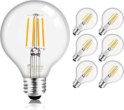 GLOBE LIGHT BULBS, G25 CLEAR GLASS, EDISON STYLE, 5.5W (60W EQUIV.), 2700K SOFT WHITE, E26, UL, ENERGY STAR, AMZ SES