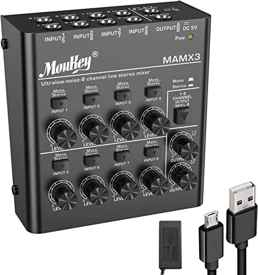 NEW REPACKED MOUKEY AUDIO LINE MIXER, DC 5V