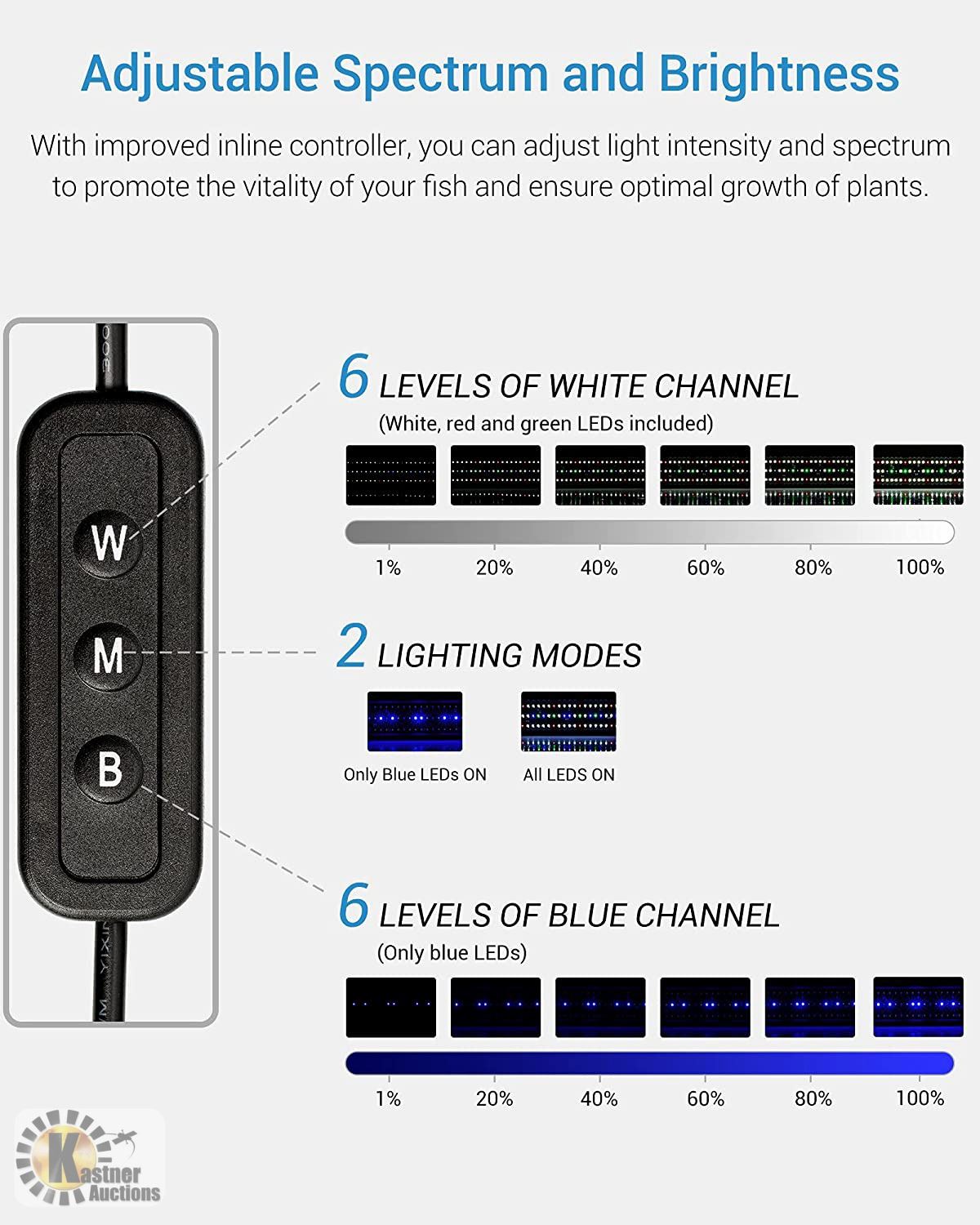 48-60", FULL SPECTRUM, FISH TANK LIGHT, 32 WATTS, DIMMABLE AND CONFIGURABLE LIGHTS TO SUIT SPECIFIC NEEDS, GREAT FOR FRESHWATER PLANTS, TESTED, AMZ SES
