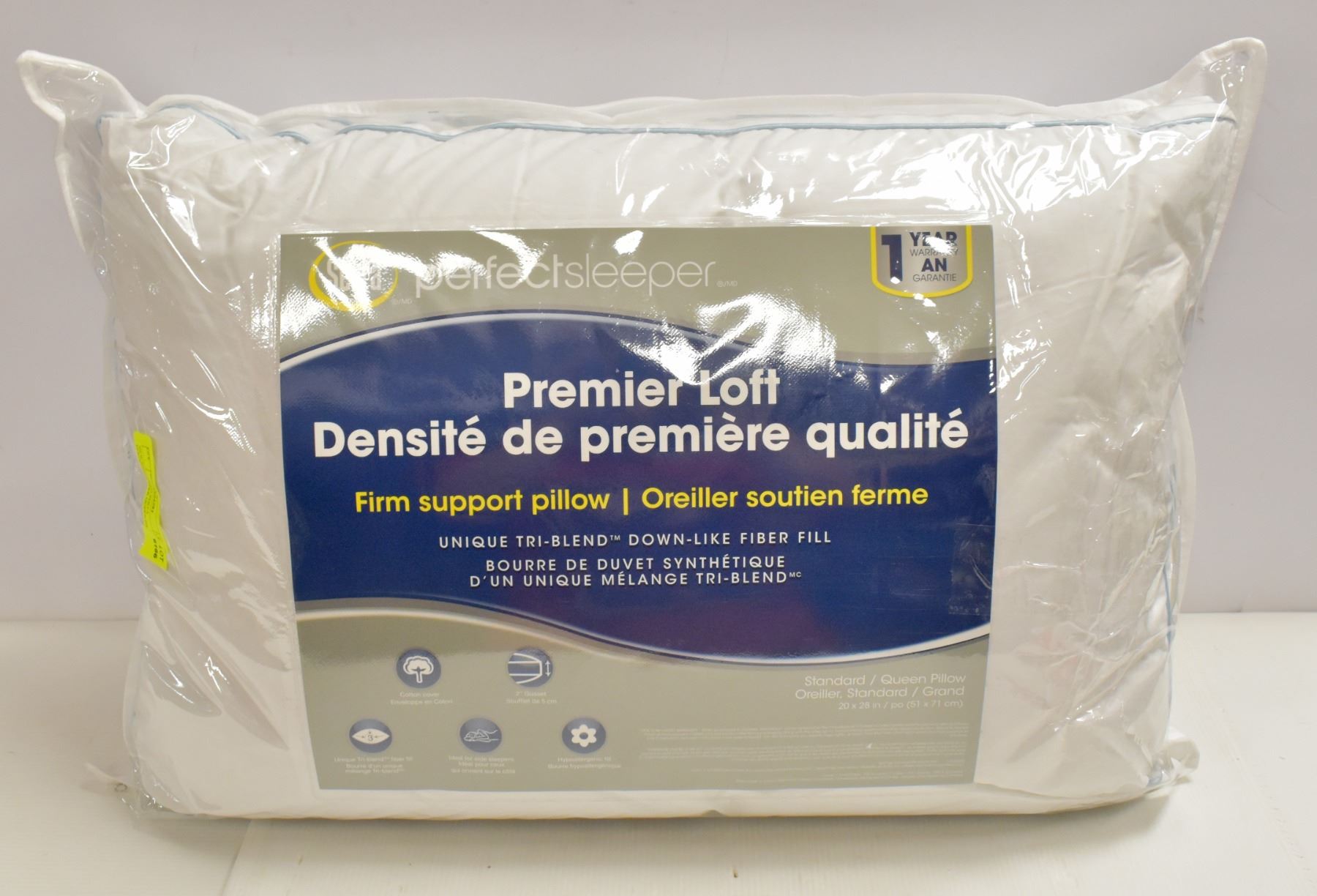 PREMIER LOFT FIRM SUPPORT PILLOW. UNIQUE TRI-BLEND PILLOW, DOWN LIKE FIBER FILL. IDEAL FOR SIDE SLEEPERS. STANDARD / QUEEN SIZE (20X28"). HBC SES
