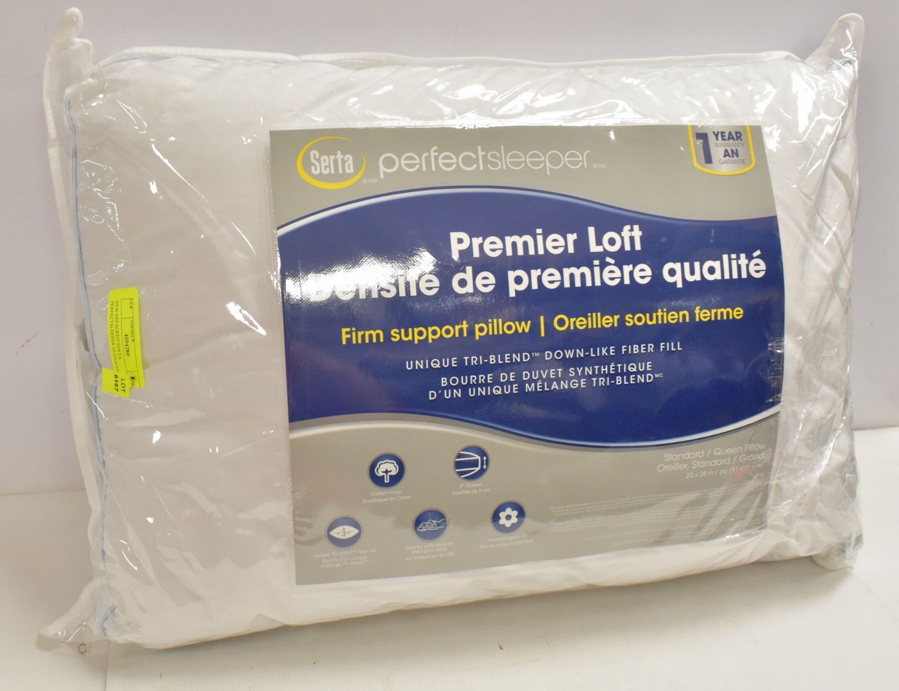 PREMIER LOFT FIRM SUPPORT PILLOW. UNIQUE TRI-BLEND PILLOW, DOWN LIKE FIBER FILL. IDEAL FOR SIDE SLEEPERS. STANDARD / QUEEN SIZE (20X28"). HBC SES