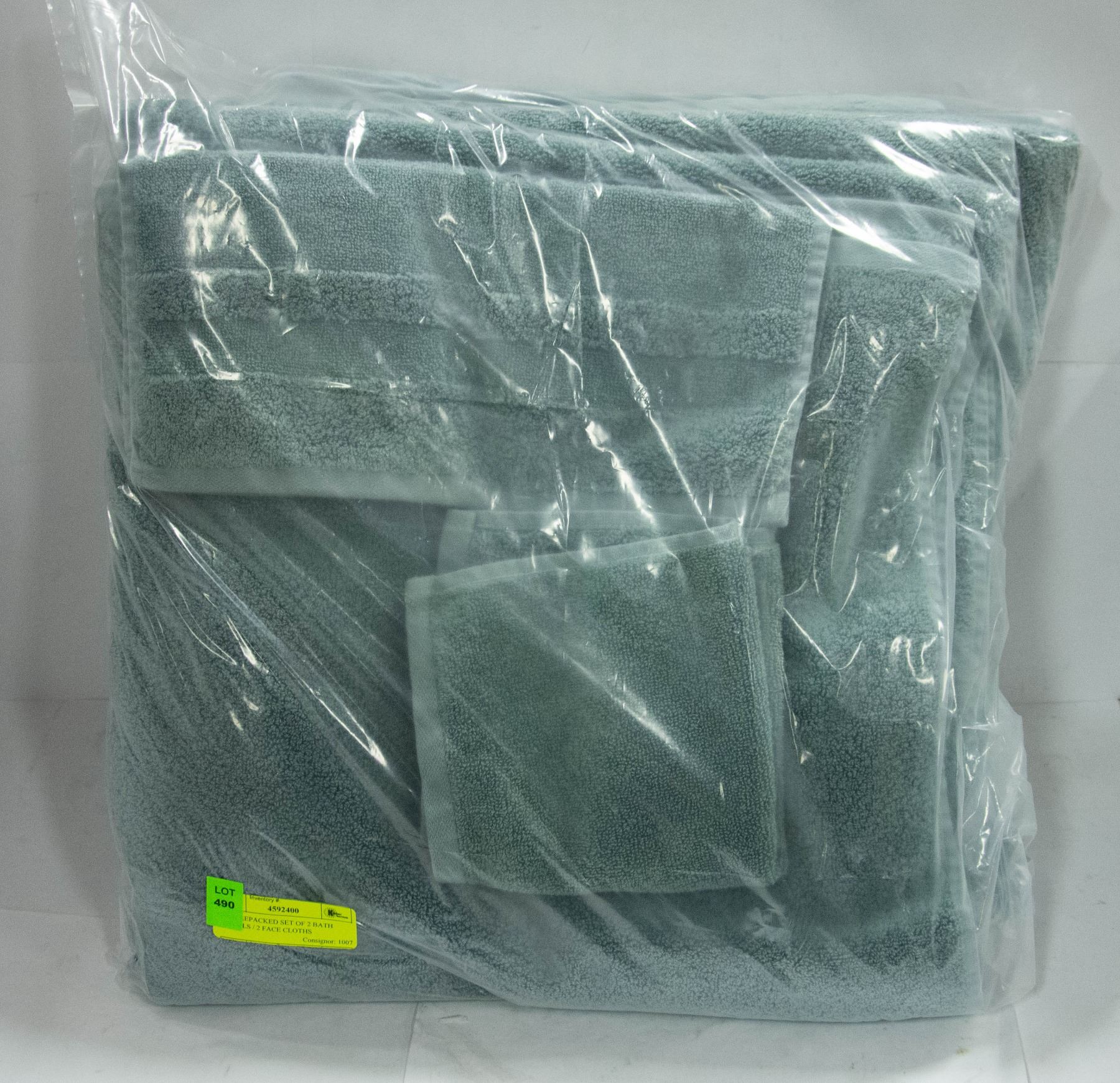 GREEN TONE, MADE BY GLUCKSTEIN HOME, 100% COTTON/MODAL BLEND, BATH TOWELS APPROX. 65 X 32", FACE CLOTHS APPROX. 12 X 12", HBC SES