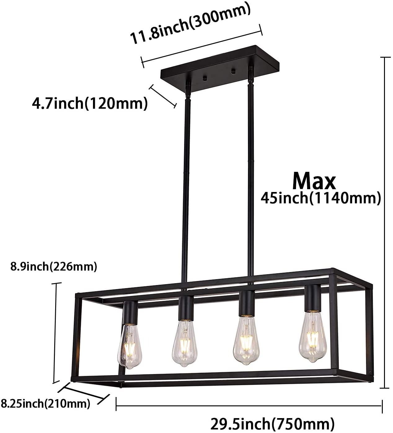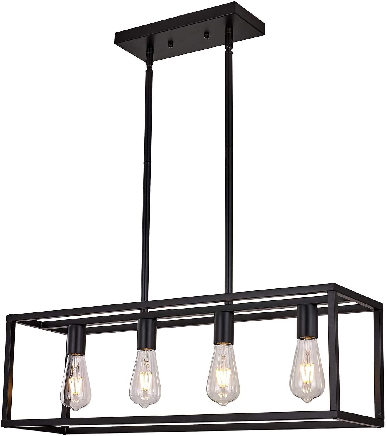 PENDANT CHANDELIER LIGHT, ADJUSTABLE HEIGHT FIXTURE, BLACK WITH SQUARED LIGHT FRAME, ALL PARTS CONFIRMED, INSTRUCTION MANUAL INCLUDED, AMZ SES