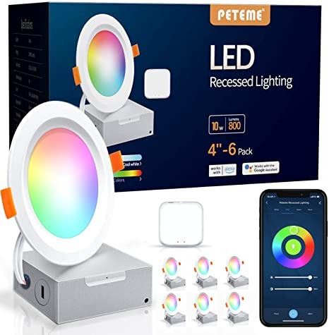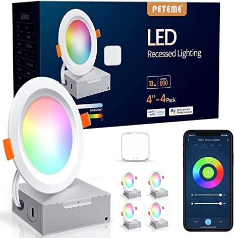 KIT, 4 PACK, WIFI DOWNLIGHT, 800LM, 10W, WHITE, WARM AND MULTI COLOUR, COMPATIBLE WITH ALEXA/GOOGLE/SIRI, *ORIGINALLY A 6 PACK BUT TWO OF THE BULBS WERE NON FUNCTIONING AND REMOVED*, AMZ SES