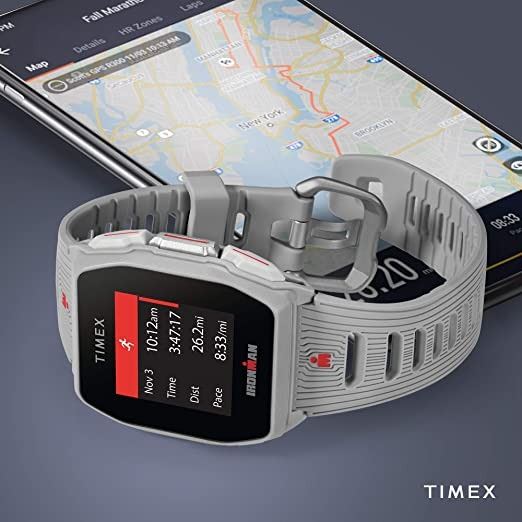 LIGHT GREY COLOUR, COMES WITH USB CHARGING CORD, HEART RATE WITH HR ZONES AND HR ZONE TRAINING, ONBOARD GPS AND GLONASS, 24/7 ACTIVITY TRACKER, STEPS, DISTANCE, CALORIES, SLEEP, WORKOUT MODES, SILICONE STRAP, 100FT WATER RESISTANT, CONNECTS TO PHONE, TIMEX SMART MOBILE CONNECTIVITY AND APP, TESTED, CHARGED, MANUAL AND ORIGINAL BOX INCLUDED, AMZ SES