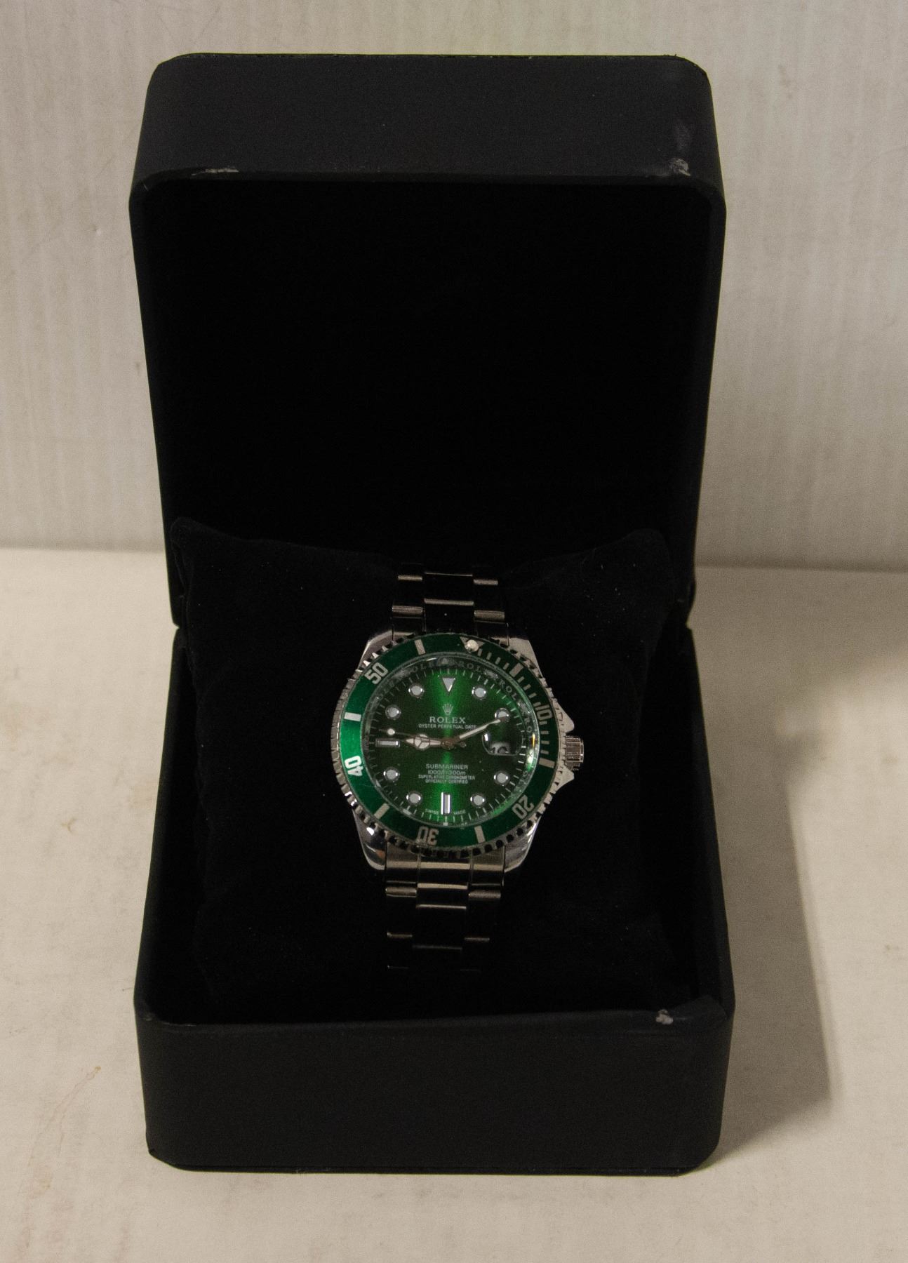 CHRONOMETER STAINLESS STEEL BACK WATER RESISTANT WITH BLUE BEZEL AND FACE STEEL BAND WITH WATCH BOX **ALL ITEMS MUST BE REMOVED BY 5PM SATURDAY, JULY 27TH 2024. ALL REMAINING ITEMS WILL BE SUBJECT TO A $6.00 PER DAY STORAGE CHARGE. ANY ITEMS REMAINING AFTER MONDAY, AUGUST 12TH, 2024 WILL BE CONSIDERED FORFEITED. NO REFUNDS WILL BE ISSUED FOR FORFEITED ITEMS. TO SCHEDULE A PICK UP APPOINTMENT CLICK HERE