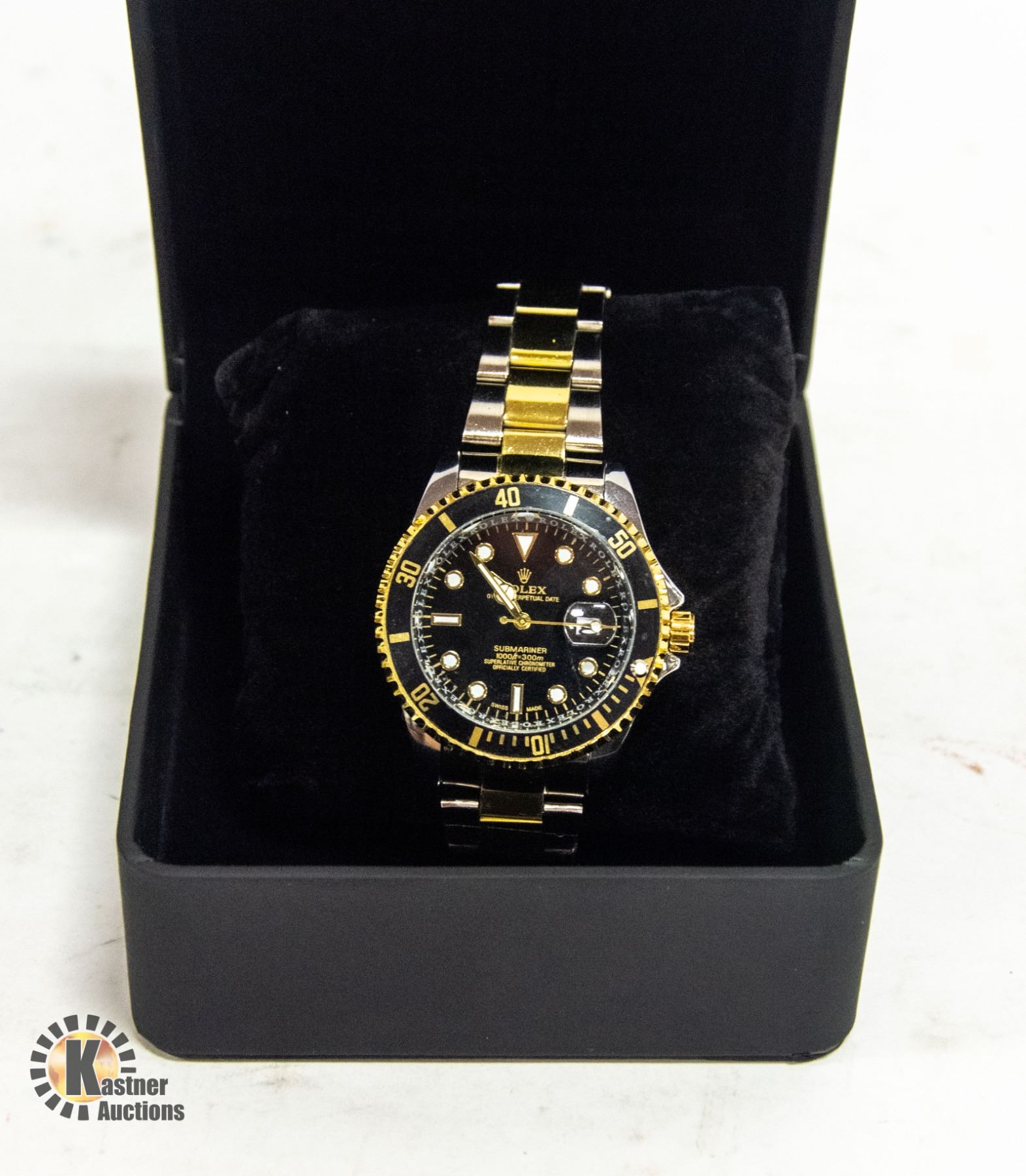 MOVEMENT SUPERLATIVE CHRONOMETER STAINLESS STEEL BACK WATER RESISTANT WITH BLACK AND GOLD BEZEL AND BLACK FACE WITH STEEL BAND AND WATCH BOX **ALL ITEMS MUST BE REMOVED BY 5PM SATURDAY, FEBRUARY 17TH 2024. ALL REMAINING ITEMS WILL BE SUBJECT TO A $6.00 PER DAY STORAGE CHARGE. ANY ITEMS REMAINING AFTER MONDAY, MARCH 4TH, 2023 WILL BE CONSIDERED FORFEITED. NO REFUNDS WILL BE ISSUED FOR FORFEITED ITEMS. TO SCHEDULE A PICK UP APPOINTMENT CLICK HERE