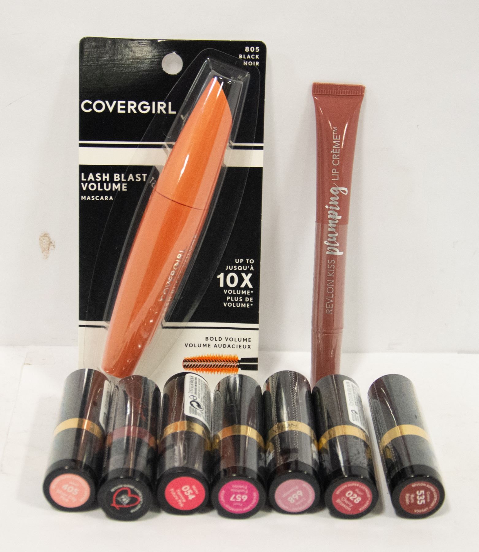 7 REVLON SUPER LUSTROUS LIPSTICKS (COLOR 028, 054, 405,535,657,745,899), 1 REVLON KISS PLUMPING LIP CREME AND 1 COVERGIRL LASH BLAST VOLUME MASCARA BLACK