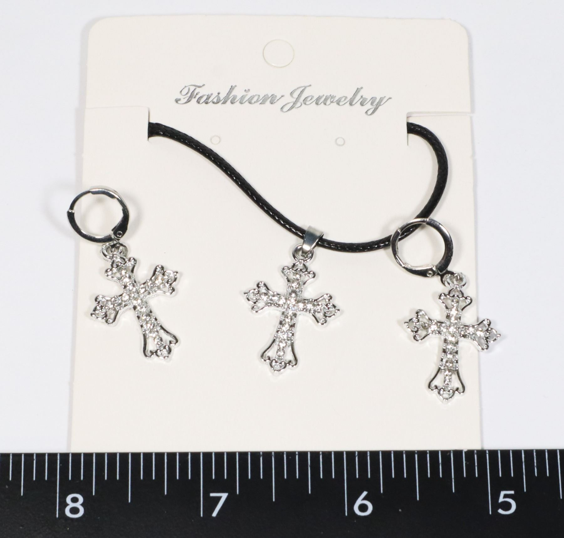 NEW RHINESTONE CROSS EARRINGS AND NECKLACE SET
