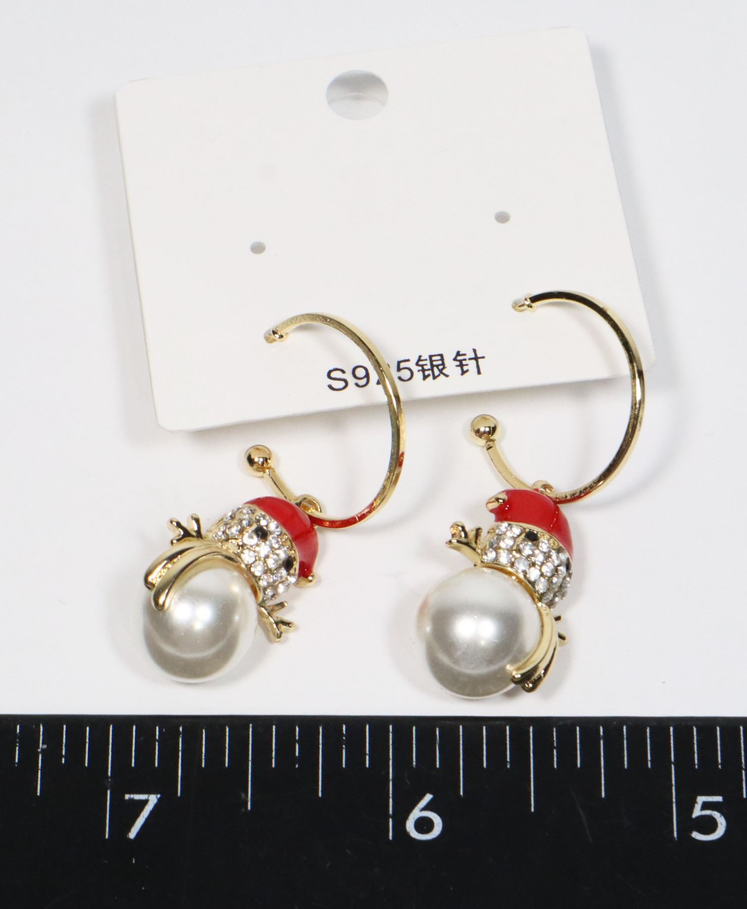 NEW RHINESTONE FAUX PEARL SNOWMAN EARRINGS