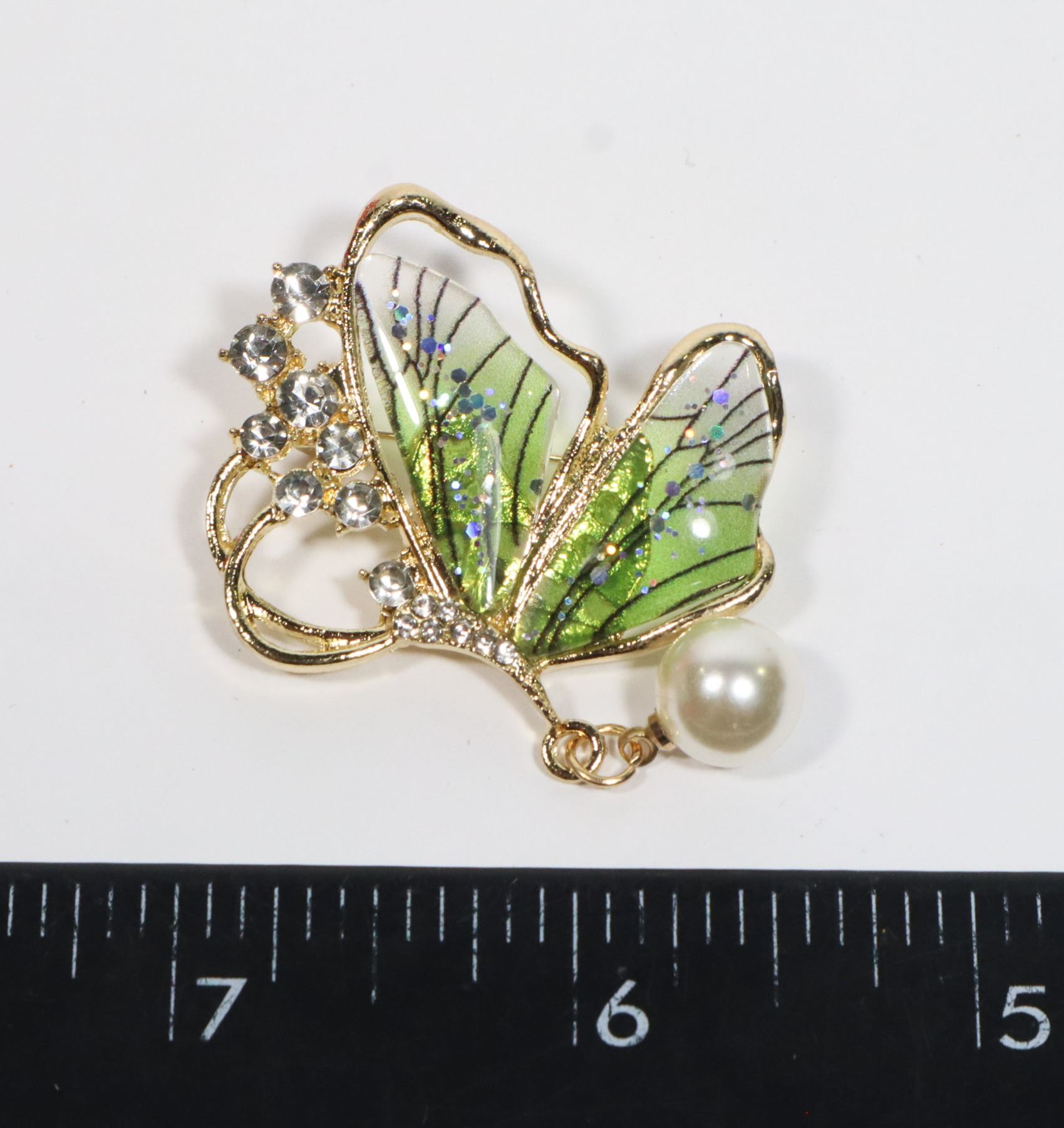 NEW RHINESTONE GREEN WINGED BUTTERFLY BROOCH