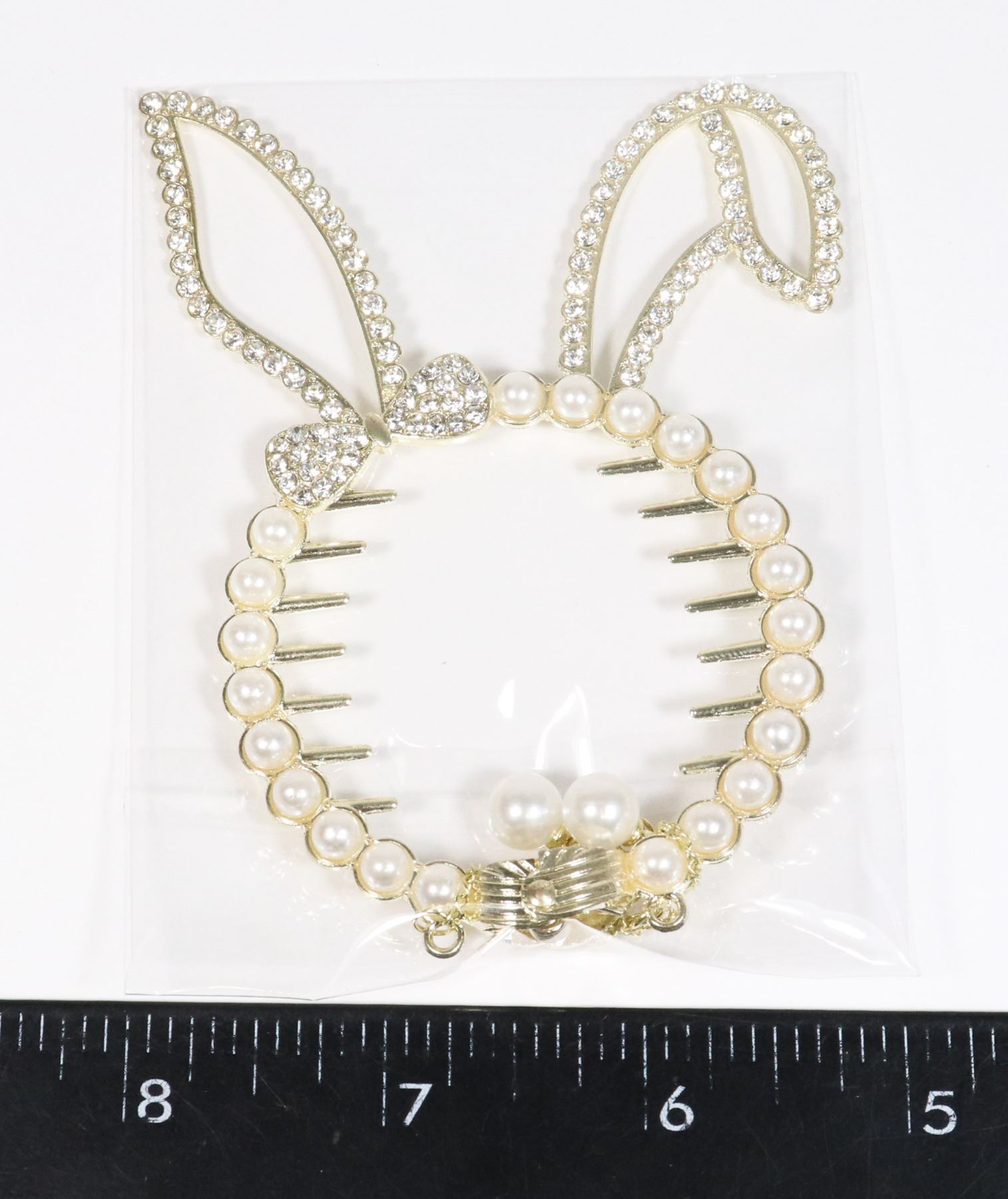 NEW RHINESTONE TASSEL BUNNY BUN SPRING HAIR CLIP