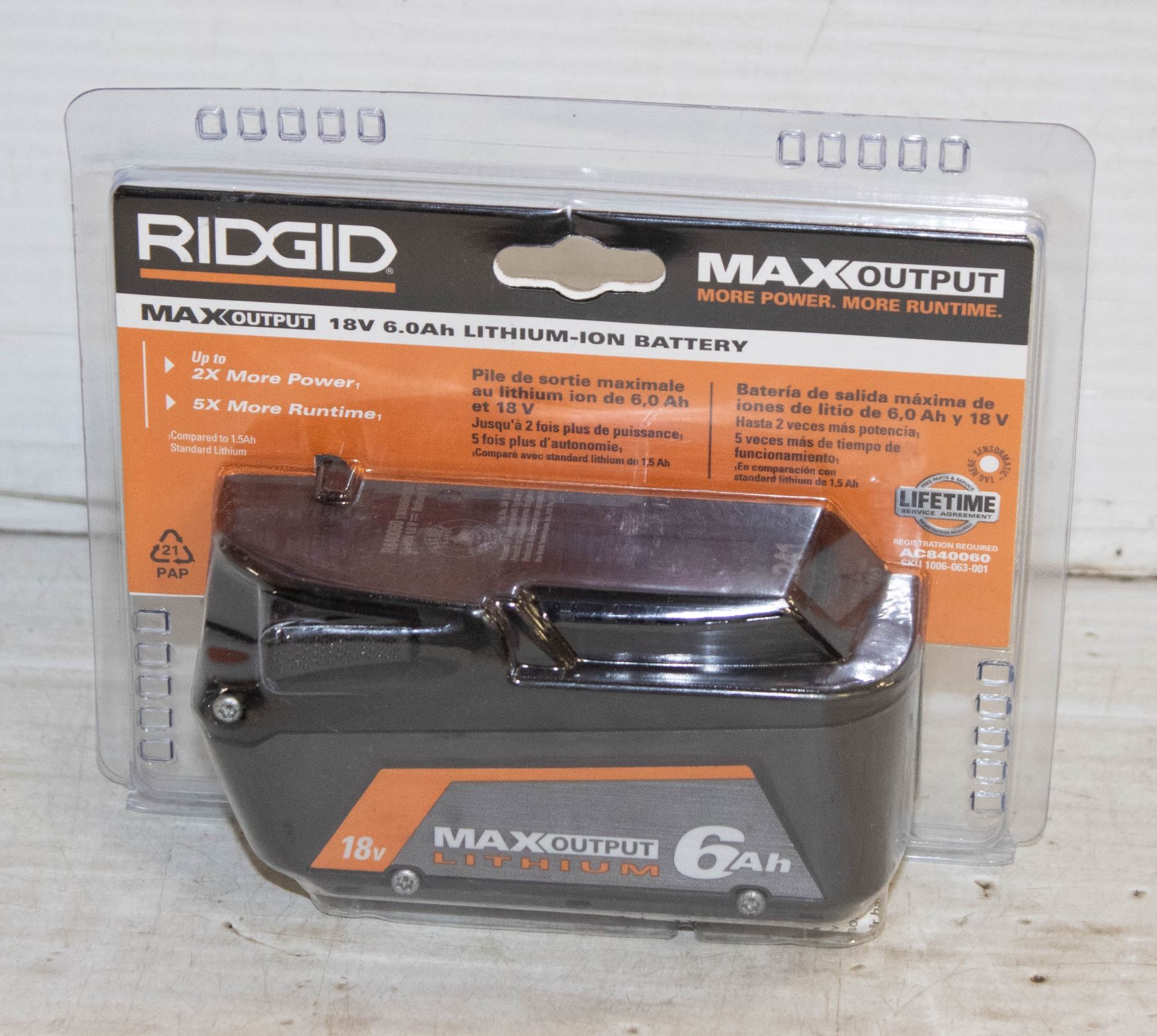 NEW RIDGID 18VOLT MAX OUTPUT LITHIUM 6 AH BATTERY