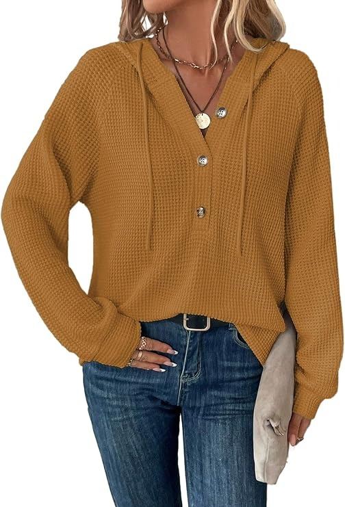 NEW RIROW WAFFLE HOODED LONG SLEEVE CARAMEL SZ S