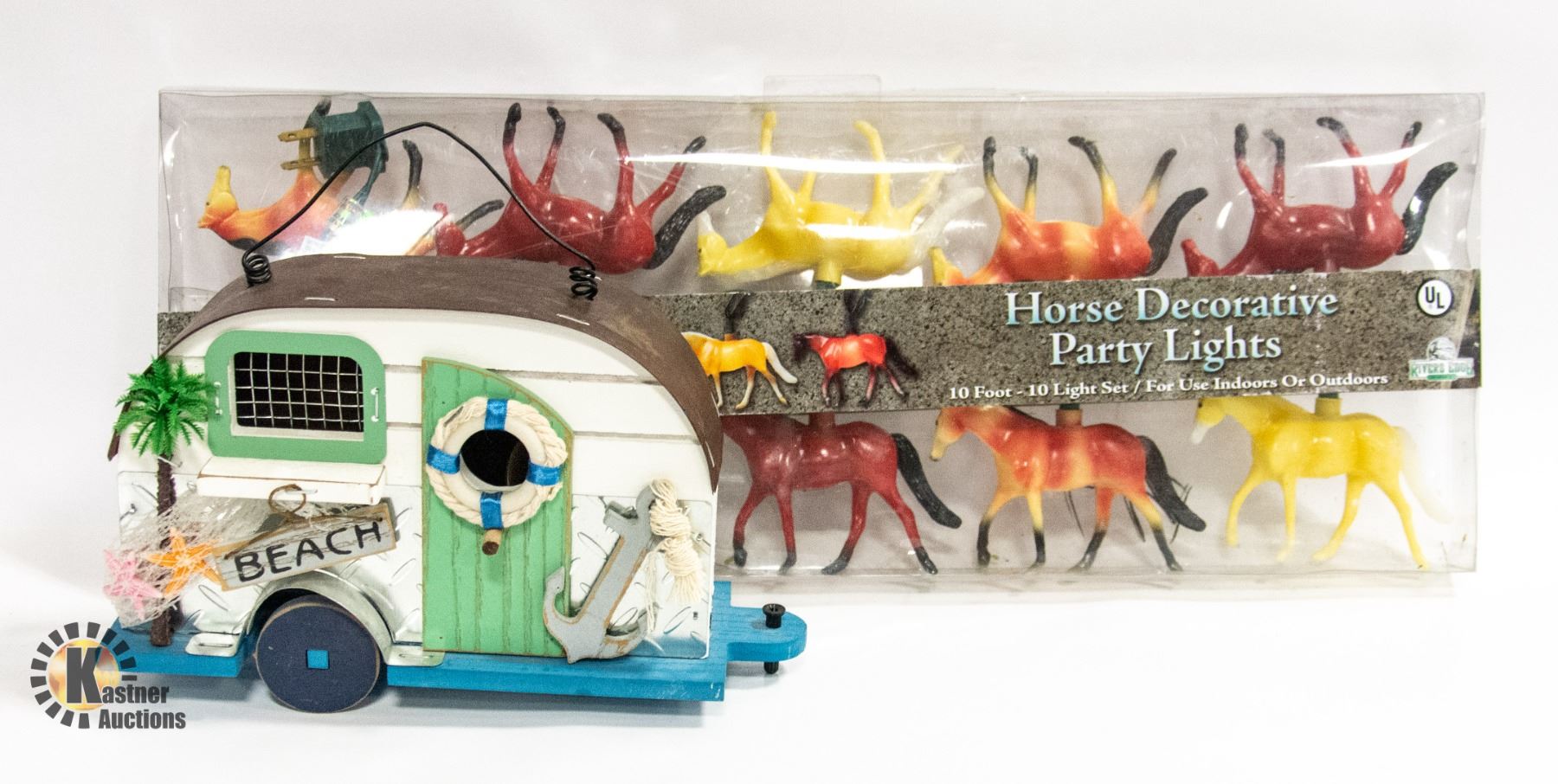 PATIO PARTY LIGHTS 10 FT W/NEW METAL BIRD HOUSE TRAILER **ALL ITEMS MUST BE REMOVED BY 5PM SATURDAY, APRIL 29TH 2023. ALL REMAINING ITEMS WILL BE SUBJECT TO A $6.00 PER DAY STORAGE CHARGE. ANY ITEMS REMAINING AFTER MONDAY, MAY 15TH, 2023 WILL BE CONSIDERED FORFEITED. NO REFUNDS WILL BE ISSUED FOR FORFEITED ITEMS. TO SCHEDULE A PICK UP APPOINTMENT CLICK HERE