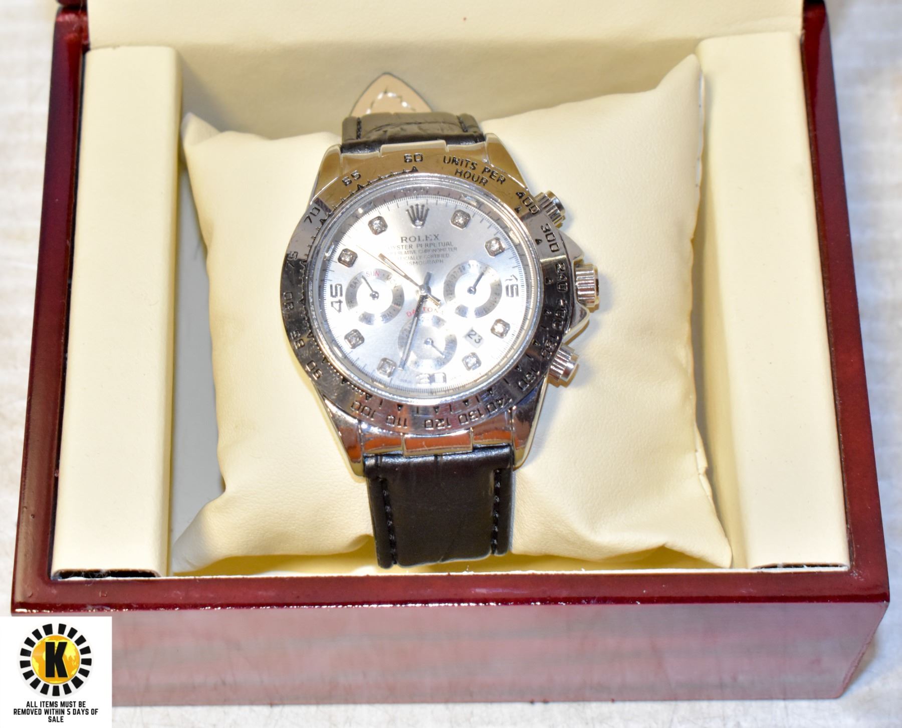 GENUINE LEATHER STRAP WITH CHERRY WOOD WATCH BOX
