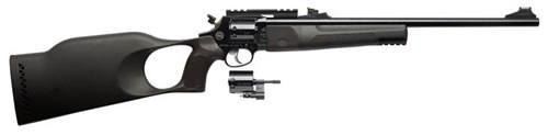 FAMILY:Circuit Judge Series MODEL:Circuit Judge TYPE:Rifle ACTION:Double / Single Action FINISH:Blue STOCK/FRAME:Synthetic Stock STOCK/GRIPS:Synthetic Thumbhole Stock CALIBER/GAUGE:22 LR | 22 Magnum CAPACITY:9 BARREL:18.5" ADDL INFO:Two Interchangeable Cylinders ADDL INFO:Handguard Picatinny Rail ADDL INFO:Scope Base & Hammer Extension
