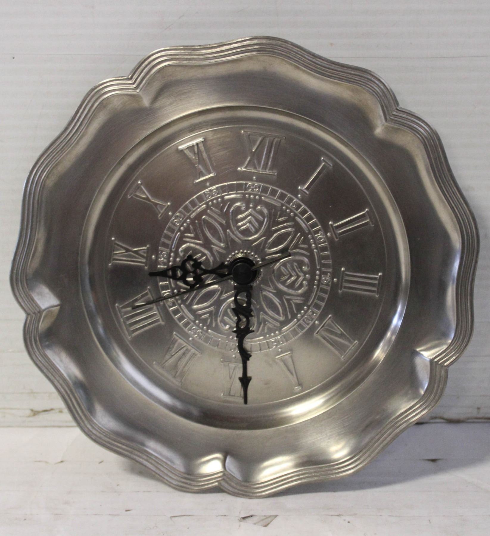 NEW ROUND WALL CLOCK PEWTER - 9"