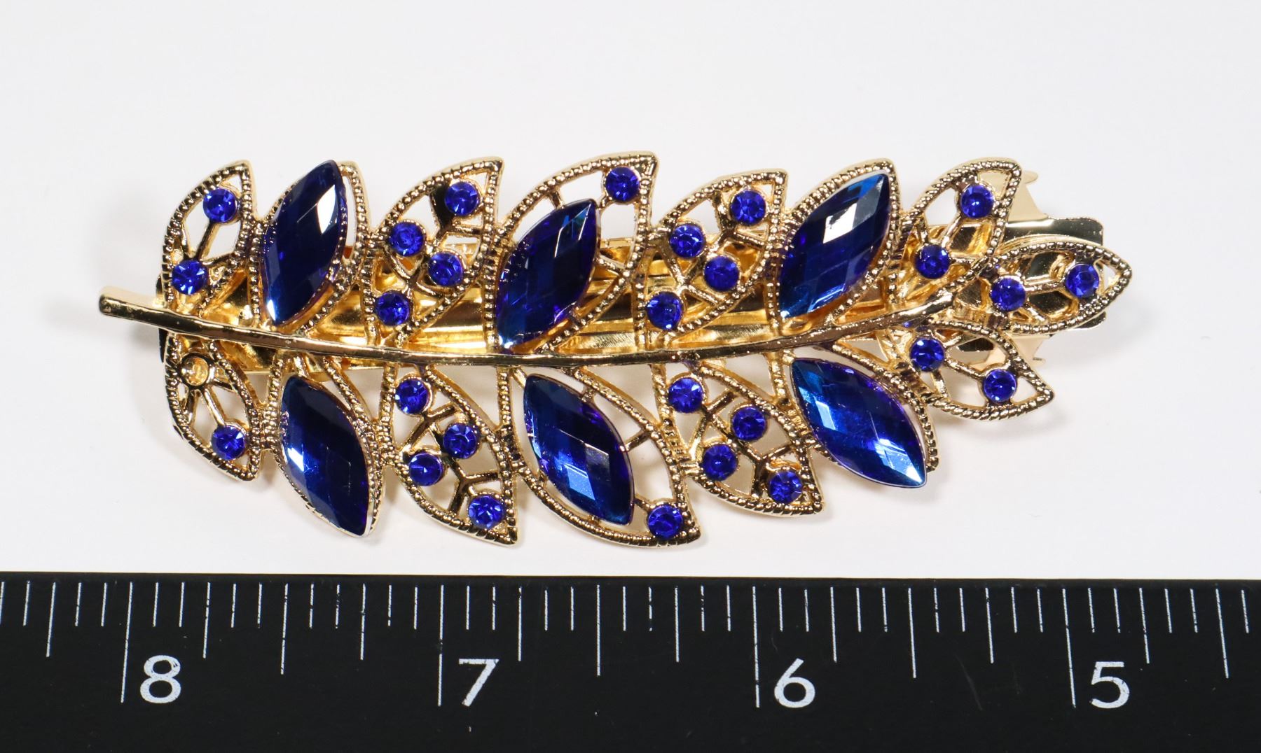 NEW ROYAL BLUE RHINESTONE LEAF DESIGN FRENCH CLIP