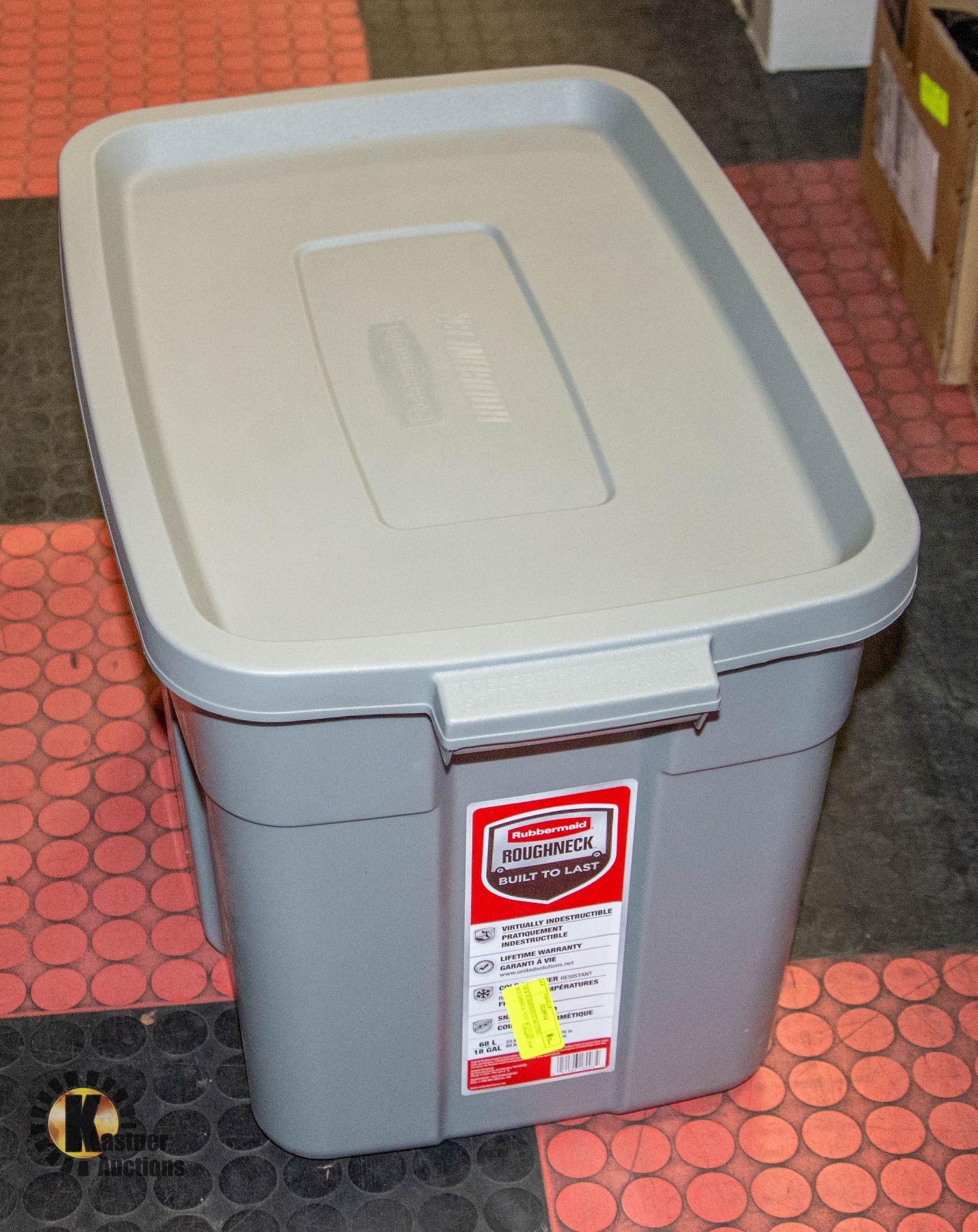 NEW RUBBERMAID 68 LITRE ROUGHNECK TOTE WITH LID