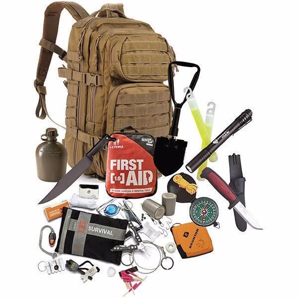 Features Bear Grylls Survival Series Ultimate Kit Bowie Machete, 12.00 in., Polypropylene Handle, w/ Sheath Campers Tri Fold Shovel, Small,Powder Coated, Serrated i3S EOS, Black, 80 lm, 1 x AAA Glow Stick 2pk Pro S, Black/Blue Rubber Handle, Plain w/Sheath Pulse 1500 mAh, 1x Charge, Orange Directional Magnetic Compass w/Lanyard Assault Pack, Coyote Adventure First Aid 1.0, Orange/Black G.I. canteen 1 QT., O.D. color Duct Tape, 72 in.