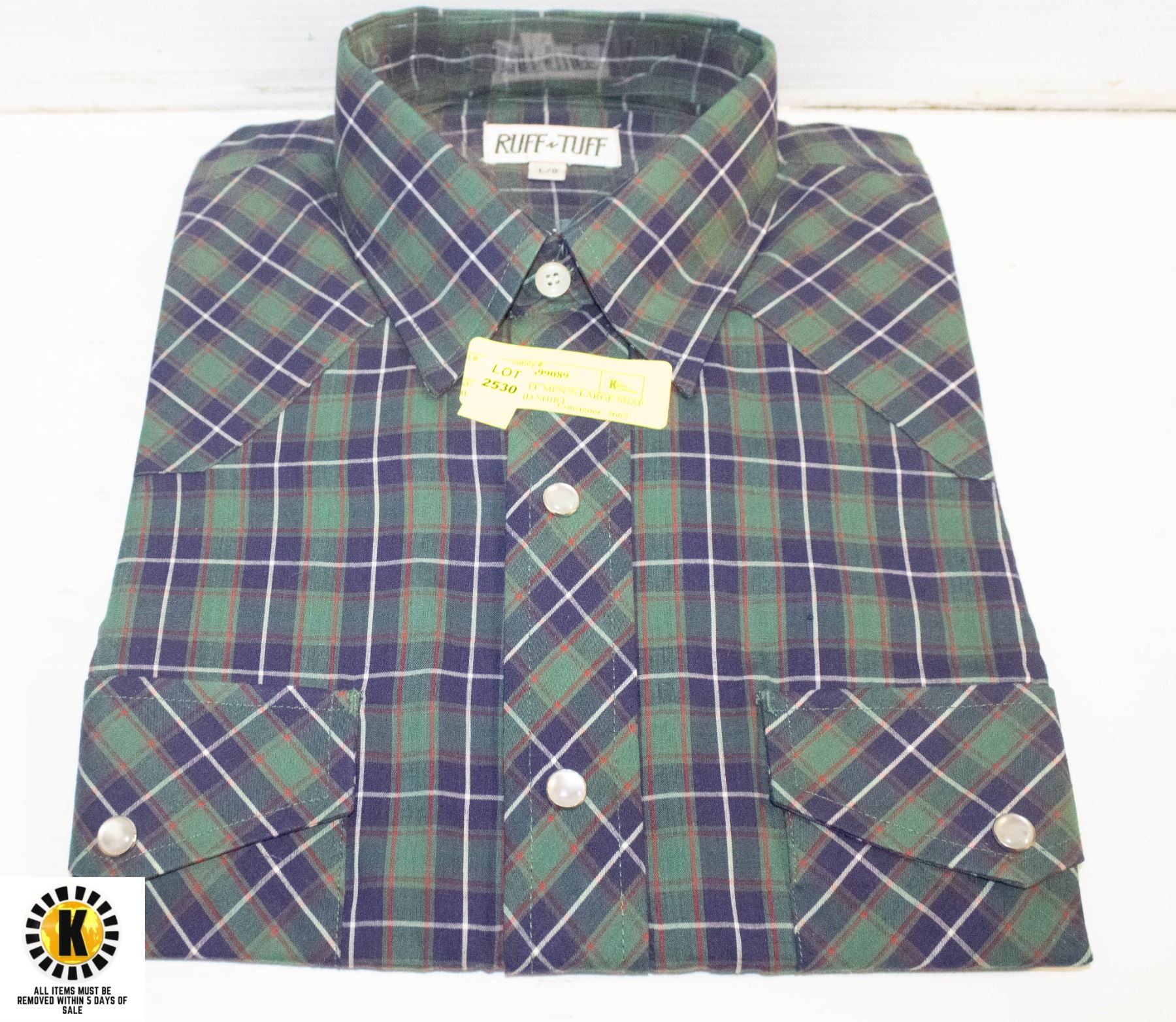 NEW RUFF TUFF MEN?S LARGE SNAP BUTTON PLAID SHIRT