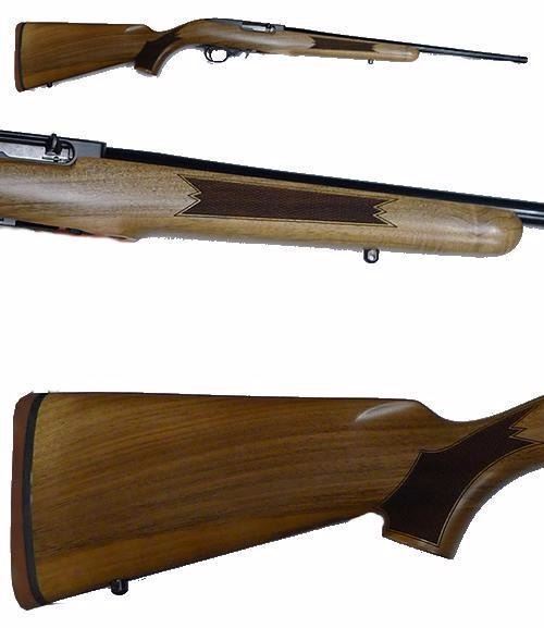 FAMILY:10/22 Series MODEL:10/22 TYPE:Rifle ACTION:Semi-Auto FINISH:Blue STOCK/FRAME:Wood Stock STOCK/GRIPS:French Walnut CALIBER/GAUGE:22 LR CAPACITY:10+1 BARREL:20" SIGHTS:None SAFETY:Crossbolt