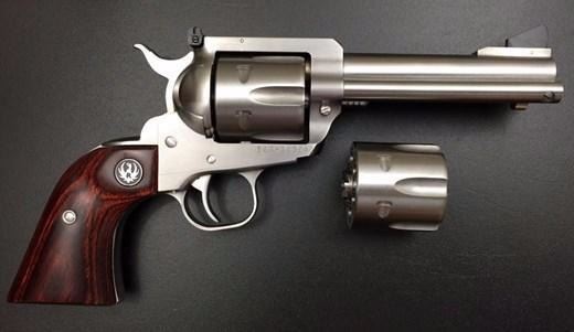 FAMILY:Blackhawk Series MODEL:Blackhawk Flattop TYPE:Revolver ACTION:Single Action FINISH:Stainless Steel STOCK/FRAME:Steel Frame STOCK/GRIPS:Wood CALIBER/GAUGE:357 Magnum | 9mm CAPACITY:6 BARREL:4-5/8" SIGHTS:Adjustable SAFETY:Transfer Bar ADDL INFO:Mid-Size Flattop Frame ADDL INFO:XR-3 Gripframe GUN CASE:Plastic
