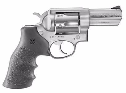 FAMILY:GP100 Series MODEL:GP100 TYPE:Revolver ACTION:Double / Single Action FINISH:Stainless STOCK/FRAME:Steel Frame STOCK/GRIPS:Black Rubber CALIBER/GAUGE:357 Magnum | 38 Special CAPACITY:6 BARREL:3" OVERALL LENGTH:8.25 RATE-OF-TWIST:1-in-18 3/4 SIGHTS:Fixed SAFETY:Transfer Bar ADDL INFO:Full Shroud GUN CASE:Plastic