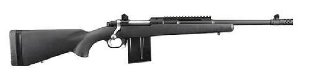 FAMILY:77 Centerfire Series MODEL:Gunsite Scout Rifle TYPE:Rifle ACTION:Bolt Action FINISH:Matte Black STOCK/FRAME:Synthetic Stock STOCK/GRIPS:Black Synthetic SPC FEATURE:Threaded Barrel Model CALIBER/GAUGE:308 Win CAPACITY:10+1 # OF MAGS:1 MAGAZINE DESC:10 rd. Detachable Box Magazine BARREL:16.1" RATE-OF-TWIST:1-in-10" SIGHTS:Adjustable Rear / Fixed Front ADDL INFO:Includes Three 1/2" Spacers ADDL INFO:"Gunsite" Rollmarked on Rec'r ADDL INFO:Soft Rubber Recoil Pad