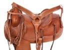 Saddle Specs: Brand: NorthwoodTM Saddlery 100% leather Color: Medium oil Rawhide Stirrups Rawhide cantle Leather horn Solid Brass hardware Well reinforced and balanced wood and fiberglass tree Measurements: Seat: 16"-18" Gullet: 7" Full QHB Cantle: 3.5" Horn: 4" Swell: 12.5" Stirrups: shortest: 30.5" longest: 36" Weight: 32 Pounds