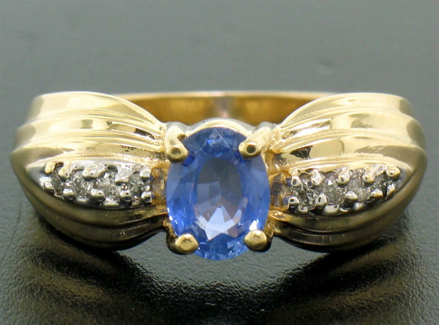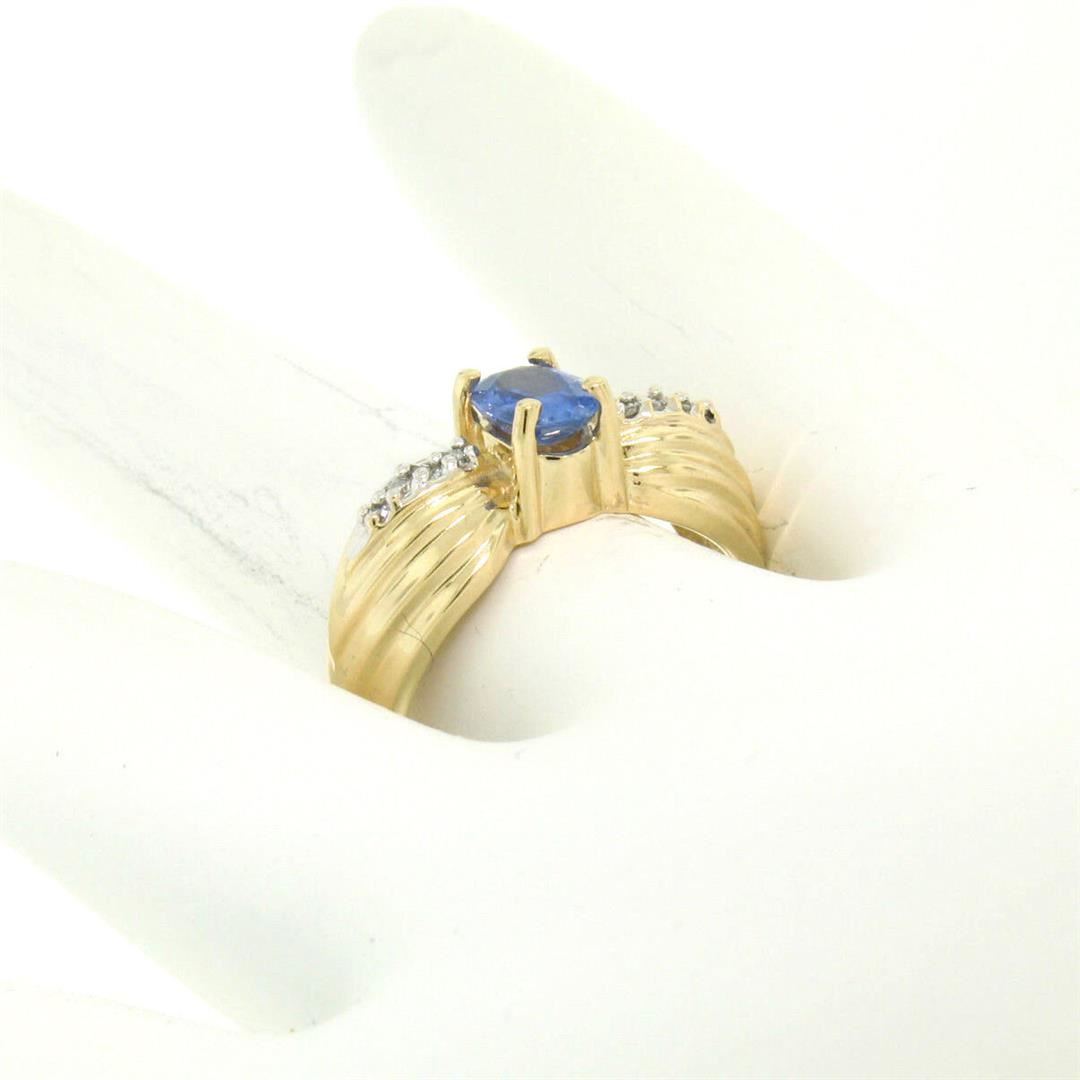 NEW Ribbed 14k Yellow Gold 1.10 ctw Oval Tanzanite Solitaire & Round Diamond Rin